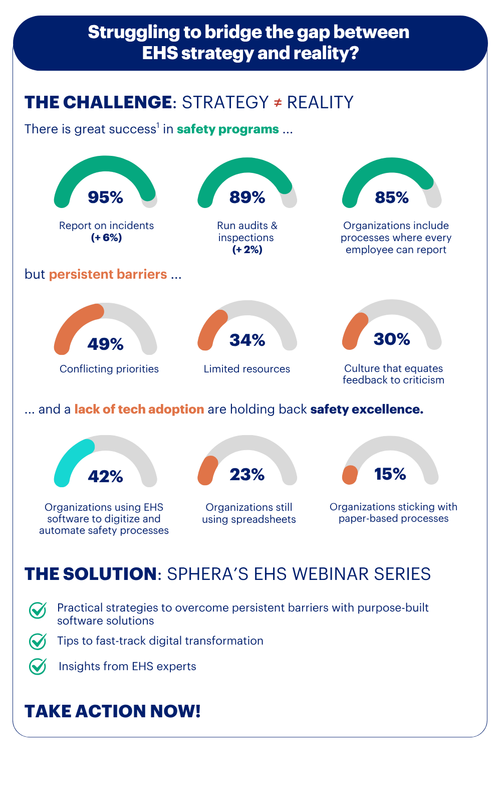 The Sphera EHS Webinar Series is your opportunity to gain expert guidance and learn practical strategies to establish a resilient safety program. From August to November, join a series of expert-led webinars designed for EHS leaders and decision-makers.